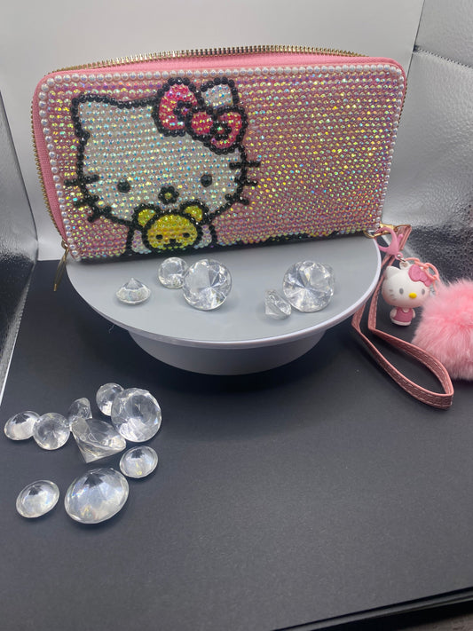 Kitty | bling| crystals | gifts for her| Kuromi | long wallet | kawaii | Pink diamonds | encrusted| Sanriod | pastel | clutch