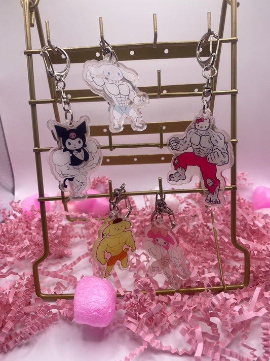 Buff Sanrio weightlifting keychain muscled | buff cinnamoroll | health | Gym | Strong | bodybuilder | body building |Acrylic Keychain (Various)